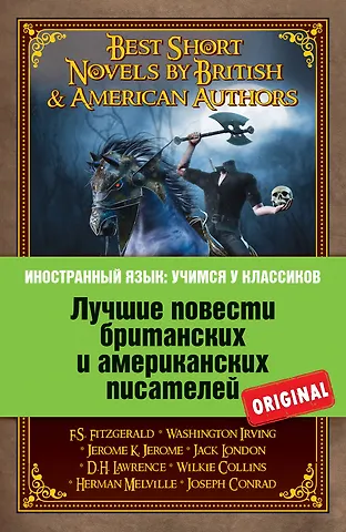 Мне давно хотелось приобрести какую-нибудь книгу из серии «Иностранный язык: учимся у классиков». Это учебная серия с ярко-зеленой полосой. Мой выбор пал на «Лучшие повести британских и американских писателей». В этом замечательном сборнике 8 известных авторов (У.Коллинз, Дж. Лондон, Дж.Конрад и др.) и 8 произведений, среди которых моя любимая «Легенда о Сонной Лощине» Вашингтона Ирвинга. Собственно из-за неё и был приобретен весь сборник, который оказался настоящей находкой! Это довольно толстая книга в мягкой обложке, и радует, что очень легкая, а ведь в ней почти 400 страниц. Можно брать с собой и, не расставаясь с любимыми авторами, продолжать чтение в дороге. Шрифт немелкий, поэтому читать удобно, и места достаточно, чтобы подписывать перевод над словами или на полях.