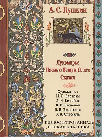 Сборник сказок Пушкина украшен лучшими иллюстрациями, выполненными представителями «Серебряного века». Знаменитая «Песнь о Вещем Олеге» дана с иллюстрациями мастера исторической и фольклорной живописи В. М. Васнецова. Иллюстрации к «Сказке о попе и работнике его Балде» выполнены ярким представителем «Серебряного века» русской культуры В. В. Спасским. Сказки о царе Салтане, о рыбаке и рыбке и вступление «Лукоморье» из поэмы «Руслан и Людмила» украшают работы И. Я. Билибина. Автором работ к «Сказке о Золотом Петушке» и Сказке о Медведице» является его ученик — Б. В. Зворыкин, которого искусствоведы считают великолепным иллюстратором и оформителем книг. Иллюстрации к «Сказке о мертвой царевне и