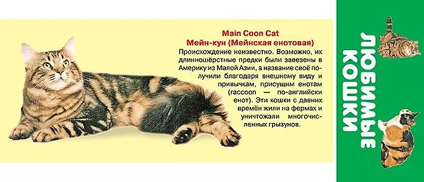 Вашему вниманию представлен набор карточек о породах кошек. На каждой карточке - одна порода, с латинским названием и кратким описанием.