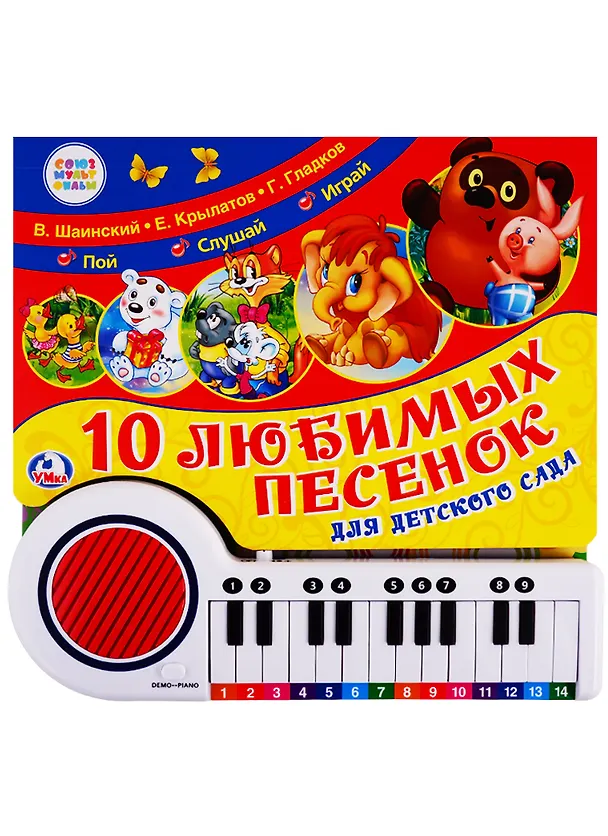 Книга «Мои любимые песенки» позволит малышам познакомиться с песнями из мультиков студии «Союзмультфильм». С помощью этой книжки-пианино, можно не только прослушать песни Шаинского, Крылатова и Гладкова, но и самому научиться петь их и играть.