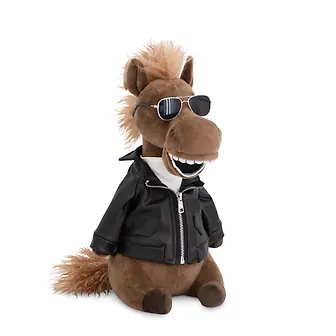 Ну как можно не купить такую креативно сделанную игрушку,которая одета в наряд крутого байкера,есть даже солнцезащитные очки на ней,тем более наступает год лошади. Игрушка мягкая и швы на ней проработаны качественно ,не видно ниток и не торчит набивка.