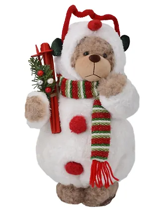 Мягкая игрушка «Новогодний Мишка-снеговик» (пластик, ткань) размером 20×40 см (артикул 92788).. Это декоративное изделие подходит для оформления новогоднего интерьера или в качестве подарка.