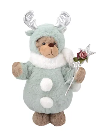 Мягкая игрушка Новогодний Мишка в костюме оленя (пластик, ткань) (20х40) (92785)
