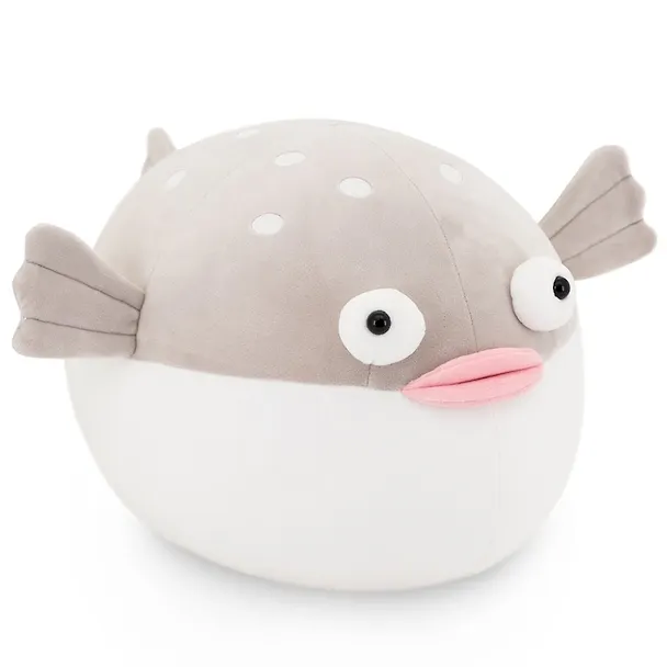 Только увидев эту мордочку уже не оставишь ее в магазине. Забавная игрушка в виде рыбы с вытаращенными глазами. Очень весилит. Приятные и не яркие цвета, мягкий материал, ровные и крепкие швы. Игрушка хороша по всем пунктам. Особенно хорошо, что нет пластиковых глаз. Ну и ее приятно тискать.