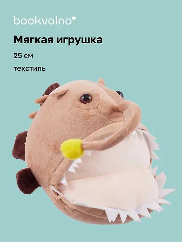 Мягкая игрушка Рыба-удильщик бежевая — забавный морской персонаж, который сразу притягивает внимание. Нежный текстиль приятен на ощупь, игрушку хочется обнять и не отпускать. Компактный размер около 25 сантиметров делает её идеальным другом для дома, путешествий и детского сна. Большой рот и выразительный взгляд превращают рыбу-удильщика в героя игр и сказок, развивая фантазию ребёнка.