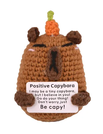 Мягкая игрушка с пожеланием Капибара (вязаная) (11см) (12-4305-202508-XP21)