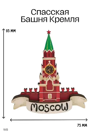 Магнит 3D из дерева Кремлевская башня (Москва) (3D011)