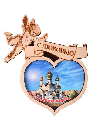 Магнит Архангельск Ангелочек Достопримечательности города вид 2 (7,5 х 7,5 см.) (хдф)