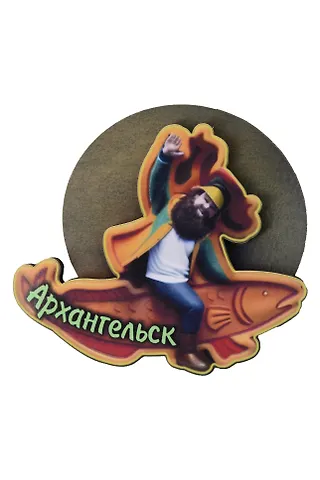 Магнит Архангельск Мужичок на рыбе вид 5 (7,5 х 7,5 см.) (хдф)