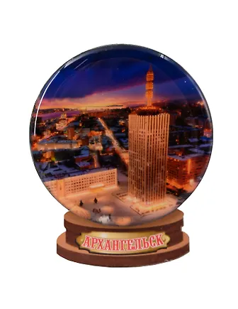 Магнит Архангельск Шар с заливкой смола Достопримечательности города вид 2 (7,5 х 7,5 см.) (хдф)