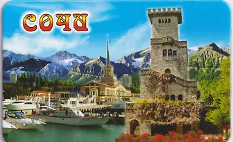 Магнит большой Башня с г.Ахун,Морской вокзал (винил) (Сочи) (030-1-135K19)