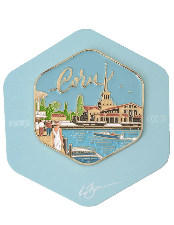Магнит Девушка на морском вокзале, коллекция СССР, с подвесом (Сочи) (кр М-102)