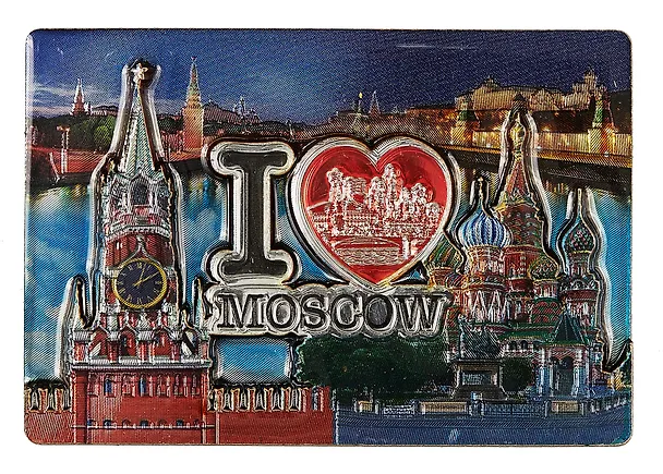 Магнит двойной фольга под смолой Спасская башня.I love Moscow (025-22-19K13)