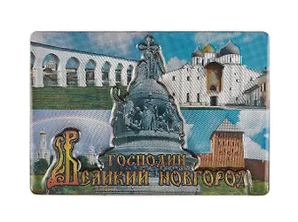 Магнит двойной фольга под смолой "Великий Новгород. Коллаж. Памятник "1000-летие России"