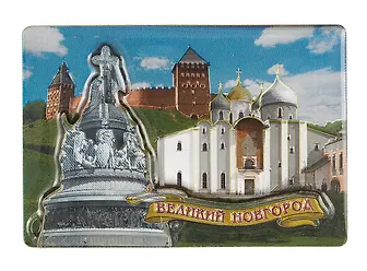 Магнит двойной фольга под смолой "Великий Новгород. Софийский собор, Памятник "1000-летие России"