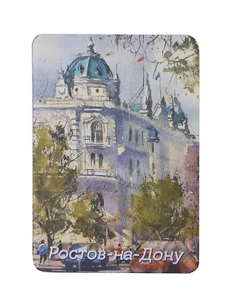 Магнит представляет собой сувенирное изделие из картона с изображением здания городской думы Ростова‑на‑Дону — выдающегося памятника архитектуры конца XIX века и одного из самых узнаваемых символов города.