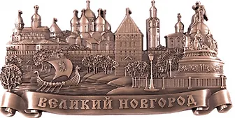 Магнит металл Коллаж Ладья (медь) (Великий Новгород) (027-6CU-28)