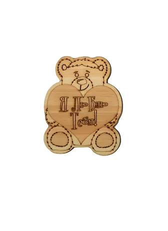 Брала чтобы добить сумму заказа и не пожалела! Классный магнитик из дерева (написано что кедр - и пахнет правда вкусно!). Рисунок не нарисован, а выжжен лазером - точно не сотрется. Сердечко и нижние лапки рифлёные. Магнит сзади почти в размер самого мишки - держится хорошо и не отваливается. При большом желании самого мишку можно раскрасить и сделать свой авторский магнит