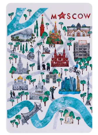 Магнит Москва Карта города (достопримечательности) (картон) (рисунок) (9х6) (Magniart)