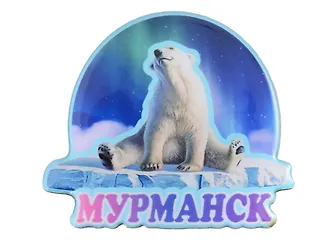 Магнит Мурманск Белый мишка с заливкой смола вид 1 (7,5,8х 7,5 см.) (хдф)