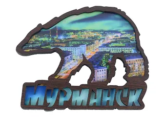 Магнит Мурманск Магнит Медведь Достопримечательности города вид 1 (7,5,8х 7,5 см.) (хдф)