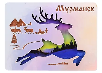 Магнит Мурманск Магнит Медведь с гравировкой Достопримечательности города вид 6 (7,5,8х 7,5 см.) (хдф) (неоновое серебро)