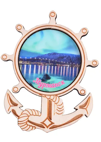 Магнит Мурманск Якорь с гравировкой Достопримечательности города вид 2 (7,5,8х 7,5 см.) (хдф)