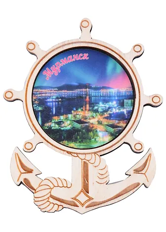 Магнит Мурманск Якорь с гравировкой Достопримечательности города вид 3 (7,5,8х 7,5 см.) (хдф)