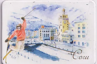 Магнит Роза-Хутор Лыжник (картон) (Сочи) (МК/501/009)