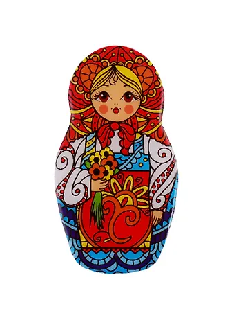 Матрёшка – это традиционный символ России, который знают и любят во всём мире. Интересно, что она появилась всего лишь в 90-х годах XIX века, а своё название получила от распространённого в то время имени Матрёна. Магнит в виде матрёшки – это отличный сувенир для друзей из других стран.