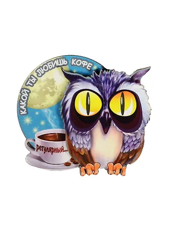 Магнит Сова с кофе 5 Регулярный (7,5см) дерево