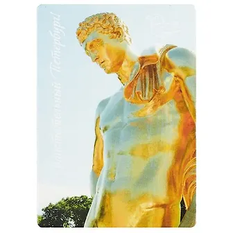 Ну очень стильный магнитик ) выделяется даже среди других. Красивый, заметный и вообще супер. Держится хорошо, на темном фоне выглядит даже лучше, чем на светлом. За счет золотой фигуры (я так понимаю, это Самсон из петергофского фонтана, хотя не уверена) привлекает взгляд.