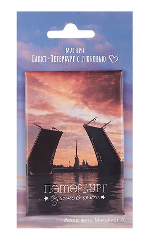 Магнит «Дворцовый мост, Петропавловская крепость. Петербург вдохновляет» — небольшой, но очень атмосферный сувенир. Фотографический вид ночного Санкт-Петербурга с разведённым мостом и узнаваемым силуэтом крепости каждый раз будет напоминать о прогулках по набережным и тёплых встречах в северной столице.