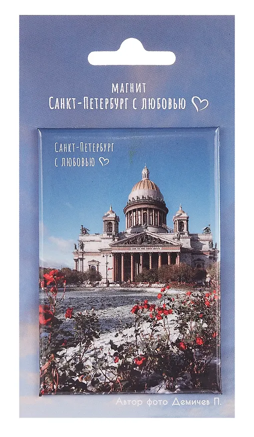 Магнит СПб Санкт-Петербург с любовью Исаакиевский собор (фото) — тёплый сувенир о городе, в который всегда хочется возвращаться. Яркое фотизображение Исаакиевского собора в вечерней подсветке, аккуратная надпись и лаконичный дизайн делают магнит стильным акцентом на холодильнике или магнитной доске. Он не выцветает и не занимает много места, при этом каждый день напоминает о путешествии, подарке близкого человека или мечте побывать в Северной столице. Подойдёт и для личной коллекции, и как небольшой, но запоминающийся презент.