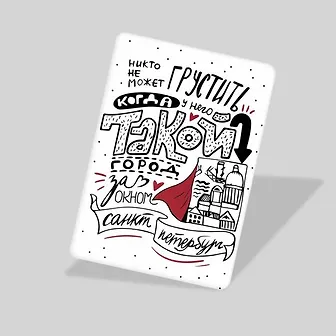 Сувенирный магнит из Санкт-Петербурга в индивидуальном прозрачном пакете от бренда «Морда Довольна»