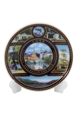 Магнит‑тарелка «Беседка, Два вокзала» (7 см) из фарфора с подставкой — миниатюрный сувенир, запечатлевший знаковые объекты Сочи. Изделие сочетает функциональность магнита и эстетику фарфоровой миниатюры. Станет изящным украшением интерьера, памятным подарком или коллекционным предметом, сохраняющим образ курортного города.