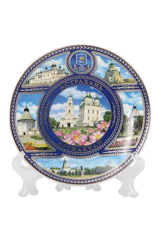 Магнит-тарелка с подставкой Кремль и Лотосы (фарфор) (7см) (Астрахань) (026-7K6-82-3)