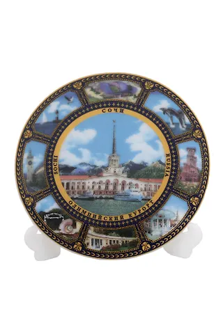 Магнит‑тарелка «Сочи» (7 см) из фарфора с подставкой — миниатюрный сувенир, воплощающий образ курортного города. Изделие сочетает функциональность магнита, эстетику фарфоровой миниатюры и удобство демонстрационной подставки. Станет изящным украшением интерьера, памятным подарком или коллекционным предметом, сохраняющим атмосферу солнечного Сочи.