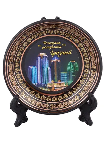 Магнит-тарелочка Грозный Ночной вид Грозный-сити D7 цв.черный фарф.