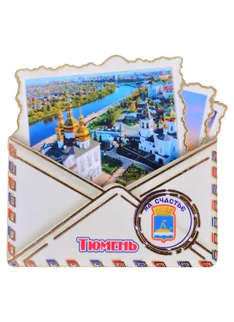 Магнит Тюмень Конверт вид 1 (дерево) (7,5см)