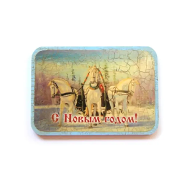 Магнит в ретро стиле "С Новым годом!". Декупаж, кракелюр. Размер 7*10 см. (2014-50)