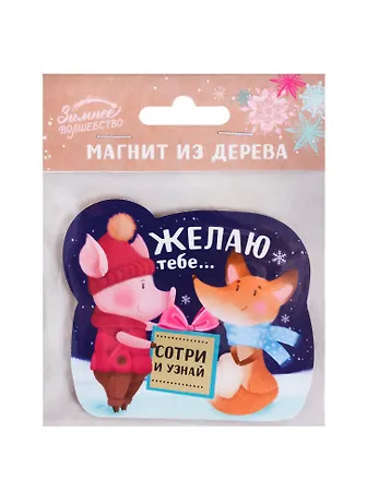 Милый новогодний магнит с хрюшкой и лисом станет хорошим сувениром для ваших друзей и знакомых. Вместе сотрите золотистый защитный слой и прочитайте доброе пожелание на будущий год.