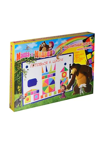 Магнитная доска с магнитами + конструктор (15515) (33х22см) (белая) (Маша и медведь) (коробка)