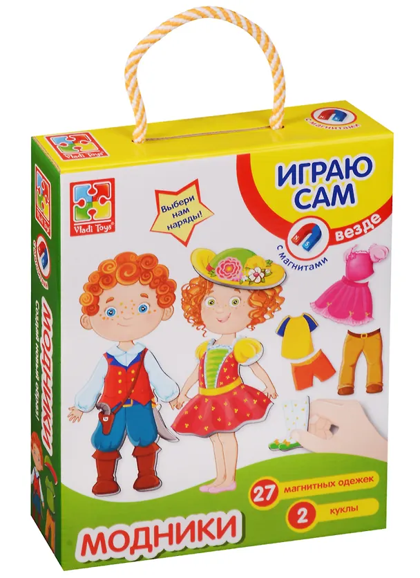 Особенности: в игре 2 персонажа и набор магнитных одежек на любой вкус, в модном журнале представлены основные модели и множество игр и головоломок. Комплектация: мягкие магнитные одежки - 27 шт, магнитные персонажи - 2 шт, шкаф для хранения одежек - 1 шт, модный журнал - 1 шт.