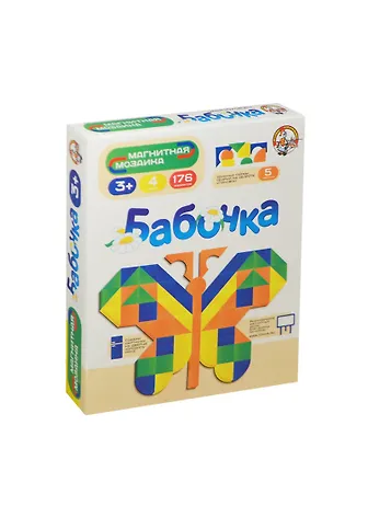 Магнитная мозаика без игрового поля Бабочка (01656) (176 элементов) (4цв.) (3+) (коробка)