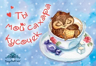 Магнитная открытка. Совы. Ты мой сахара кусочек!