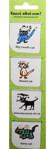 Магнитные закладки "Какой твой кот", зеленый, 4 шт