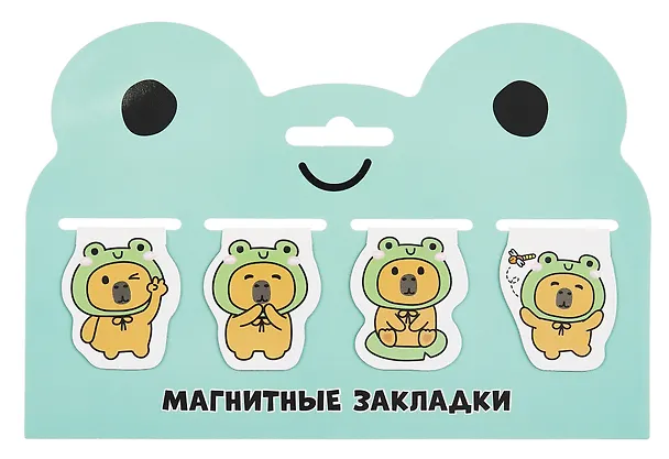 Магнитные закладки Капибары Кигуруми помогут не потерять нужную страницу и добавят настроения любому чтению. Четыре забавные капибары в уютных кигуруми легко закрепляются на листе с помощью магнита и надёжно держатся даже в толстом учебнике или ежедневнике — закладка не выпадет и не помнёт страницу.