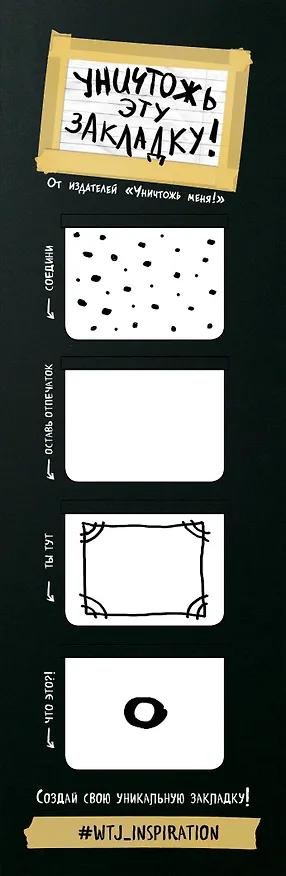 Еще один подарок для поклонников разрушительного творчества Кери Смит и ее супер-бестселлера "Уничтожь меня!" - магнитные закладки! Это не просто закладки для книжек, для каждой предусмотрено креативное задание, выполнив которое, вы создадите свою авторскую уникальную закладку!