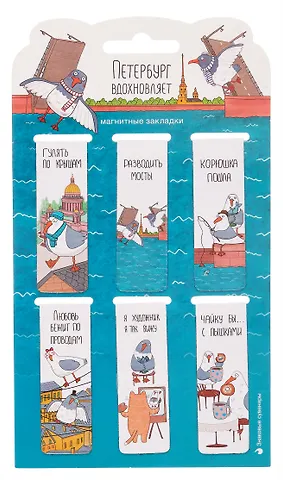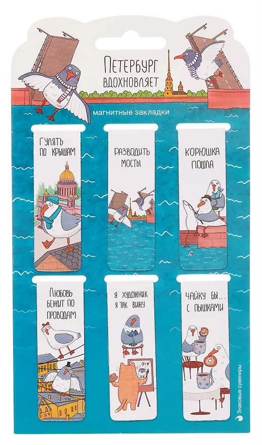 Магнитные закладки «Петербург вдохновляет» — небольшой подарок себе или близким, которые не мыслят дня без книг. Нежные иллюстрации с видами Санкт‑Петербурга создают атмосферу прогулки по любимому городу и каждый раз заставляют улыбнуться, когда вы открываете страницу.